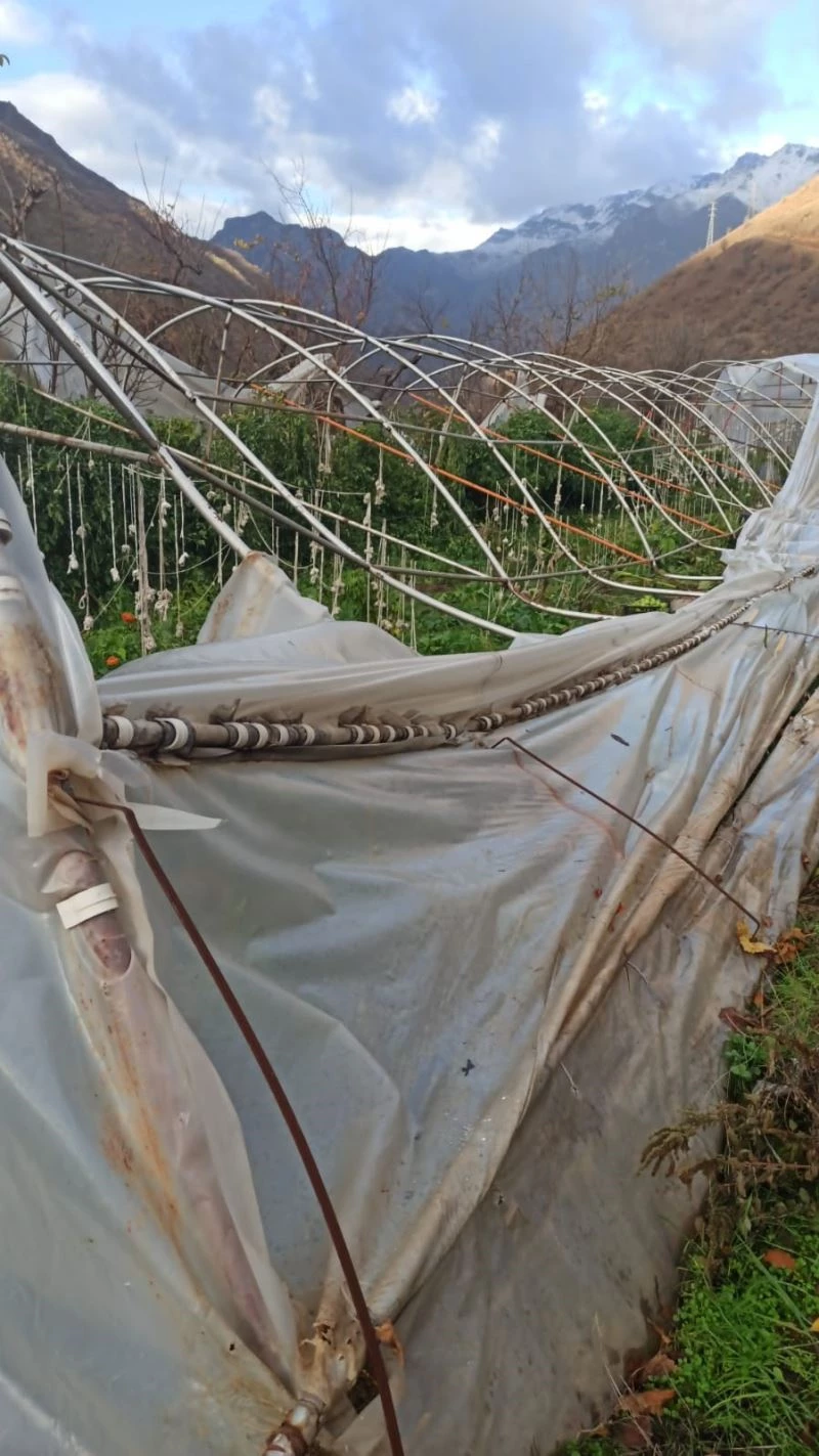 Hakkari’nin Çimenli köyü Seyitler Mahallesinde sabah saatlerinde etkili olan şiddetli rüzgar, seralara zarar verdi.
