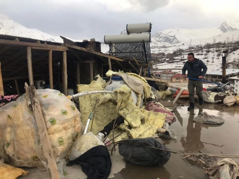 Hakkari’de şiddetli rüzgar çatıları uçurdu