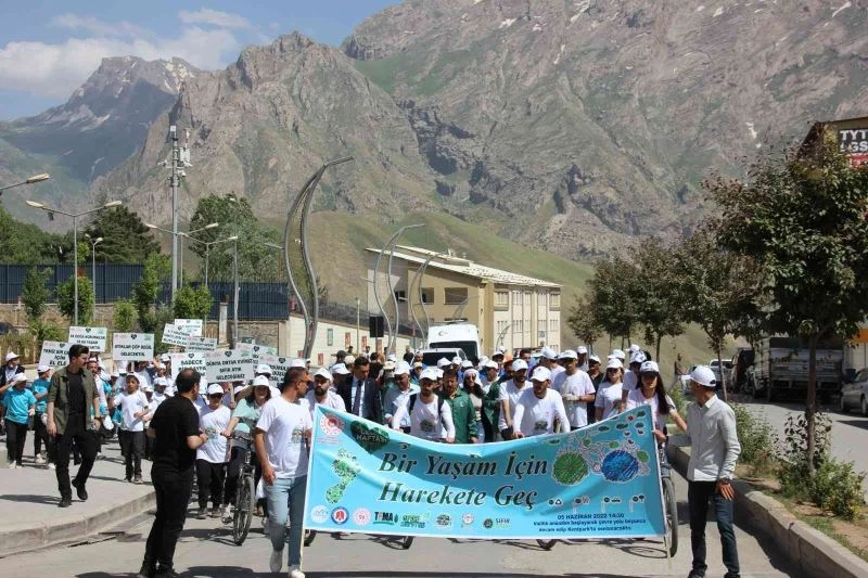 5 Haziran Dünya Çevre Günü etkinliği çerçevesinde ‘’Temiz Bir Hava İçin Pedallıyoruz’’ sloganı ile bisikletli öğrenci gurubu, ilk ve ortaokul öğrencileri, vatandaşların da olduğu grup Hakkâri Valiliğinden önünden bir araya gelerek yürüyüşe geçti. Grup ellerinde pankartlarla Pehlivan Mahallesi Çevre Yolundan, Bulak Mahallesi Kent Parkına doğru yürüyüşe geçti. Parkta son bulan yürüyüşün ardından grupta yer alanlar ile jandarma ve Toplum Destekli Polis ile birlikte parka fidan dikti. Daha sonra öğrencilere Hakkari Gençlik ve Spor İl Müdürlüğü Gençlik Merkezi gönüllüleri ve üniversite gönüllü öğrencileri ile parkta gönüllerince eğlendi. Etkinlikte yer alan Sermaye Piyasası İlkoklu ve Ortaokulu öğrencilerine kurum tarafından boyama ve bilgilendirme kitapları hediye edildi.