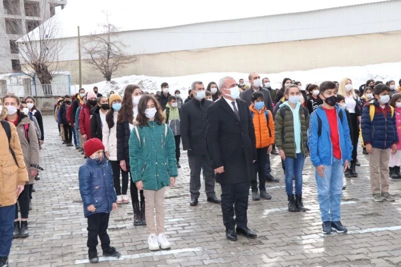 Cumhuriyet İlk ve Ortaokulunda düzenlenen törene İl Milli Eğitim Müdürü Bilal Gür, okul yönetimi ve öğrenciler katıldı. Saygı duruşu ve İstiklal Marşı’nın okunmasının ardından öğrenciler sosyal mesafe kuralları çerçevesinde sınıflara alındı.