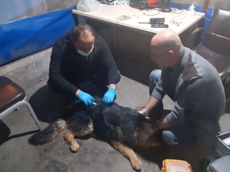 Hakkari’de yediği bir besinden zehirlenen kurt cinsi köpek tedavi altına alındı.