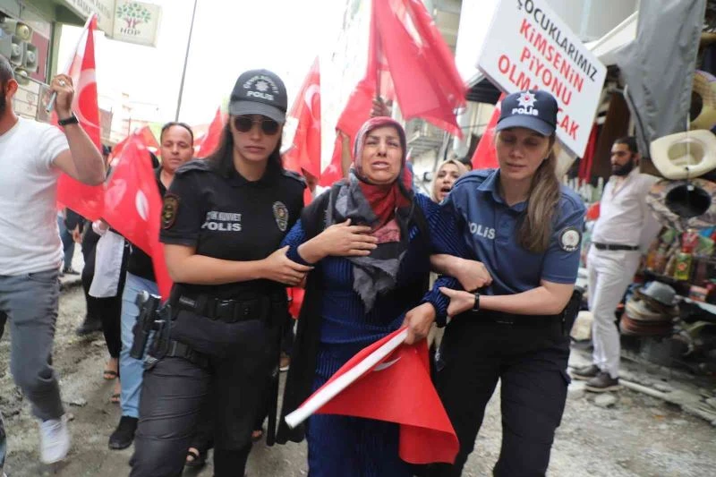 14 yaşındayken çocuğunun dağa kaçırıldığını belirten Zümrüt Salim, eline çakıl taşı alarak HDP binasına yürümek isterken kadın polisler tarafından engellendi. “Çocuğumu istiyorum” diye feryat eden kadını polisler güçlükle sakinleştirdi. Kaynının PKK tarafından dağa kaçırıldığını söyleyen Leyla Çiftçi de, Hakkari ve Van aileleri olarak burada toplandıklarını söyledi. Çiftçi, "Bizler burada yılmadan, yıkılmadan tüm Türkiye’ye sesleniyoruz. Gün birlik günüdür. Başta Hakkari halkı olmak üzere tüm halkımız artık uyansın. Hain PKK’nın ve taşeronlarının gerçek yüzünü görsün. PKK kaybettiği zaman hiçbir annenin yüreği yanmayacak, kan ve ölümler son bulacaktır" dedi.