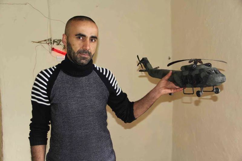 Hakkarili genç atık malzemelerden skorsky helikopter yaptı