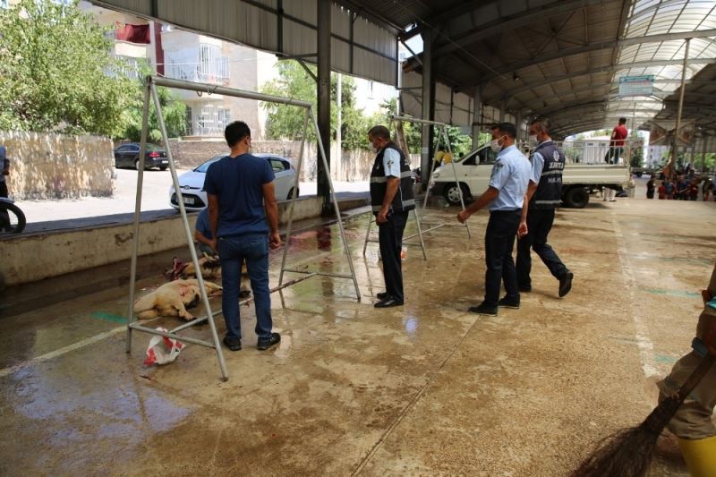 Haliliye Belediyesi, Kurban Bayramı’nın üçüncü gününde de ilgili tüm ekipleri ile sahada olmaya devam etti. Temizlik İşleri Müdürlüğüne bağlı ekipler ilçe genelinde temizlik çalışmalarını sürdürürken, kurbanlık kesimleri sonrası çöp konteynerlerine atılan atıkların pis koku yaymasının önüne geçilmesi adına konteynerler tek tek deterjanlı su ile yıkanıyor. Zabıta Müdürlüğüne bağlı ekipler ise bayram öncesi başladıkları denetimlere bayramın üçüncü günü de devam etti. Denetimlerde ekipler korona virüs salgını tedbirleri kapsamında vatandaşlara maske dağıtımını sürdürürken, vatandaşları sosyal mesafe, maske ve hijyen kurallarına uymaları yönünde uyardı.