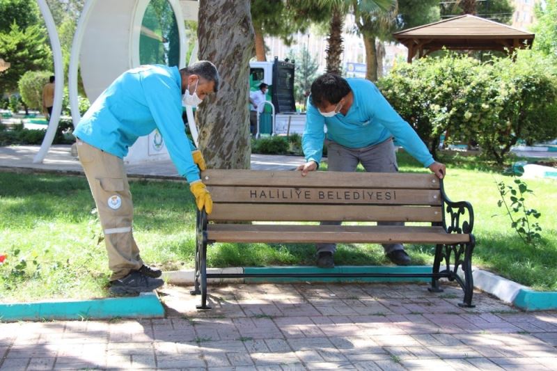 Haliliye Belediyesi, belirlenen kurallar dahilinde 1 Haziran’dan itibaren faaliyete geçecek olan park ve bahçelerde hazırlıklara başladı. Ekipler ilçe genelindeki parklarda birbirinden farklı peyzaj çalışması yaparken, yaklaşık 2 ay önce salgın nedeniyle parklardan sökülen bank, spor ve çocuk oyun grupları tekrardan yerlerine konulmaya başlandı.