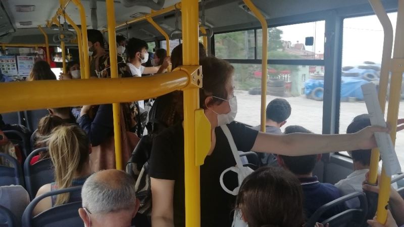 Kocaeli’de Gebze-İzmit arası sefer yapan 41 J 6006 plakalı halk otobüsünde, sabah saat 09.00 sıralarında DGS sebebiyle yoğunluk yaşandı. İsmi öğrenilemeyen otobüs şoförü, otobüsün tıklım tıklım dolmasına rağmen yolcu almaya devam edince vatandaşlar duruma tepki gösterdi. Sosyal mesafenin olmadığı ve nefes alacak yerin kalmadığı otobüste, vatandaşlar dip dibe yolculuk yapmak zorunda kaldı. İddiaya göre otobüs şoförü, vatandaşların tepkisi üzerine ‘İstediğiniz yere şikayet edebilirsiniz’ diyerek savunma yaptı. Daha sonra vatandaşların tepkisinin devam etmesi üzerine otobüs şoförü bu kez de ‘Ben size ne diyorum, siz bana ne diyorsunuz’ dedi. Vatandaşların sosyal mesafesiz bu yolculuğu yaklaşık 1 saat sürdü. O anlar ise halk otobüsünde yolculuk eden bir vatandaşın amatör kamerası tarafından saniye saniye görüntülendi.