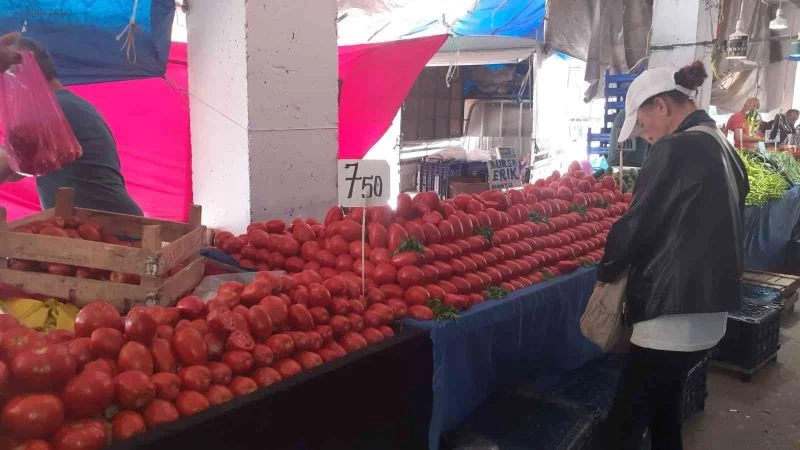 Halk pazarında tezgahlarda yer alan sebze ve meyve fiyatları şu şekilde; Domates 7-10 TL, biber 8-10 TL, patates ve soğan 7,5-10 TL, salatalık 5-7 TL, kabak 3-5 TL olmasının yanı sıra meyvelerde ise karpuzun kilosu 4 TL, diğer meyvelerin fiyatları ise 12-20 TL’den alıcı buldu.
