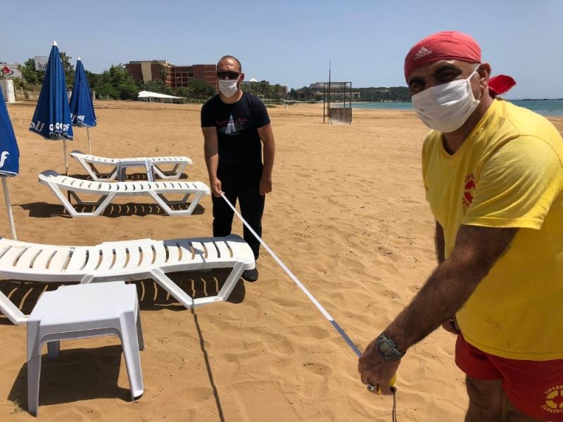 Haziran’da başlaması beklenen turizm hareketliliği Antalyalı turizm işletmecilerini canlandırdı. Plajlarda masa ve sandalye sayıları yarıya düşürülerek, şezlonglar arası mesafeler ölçülmeye başlandı. Eline metreyi alan işletme sahipleri sayısını yarıya düşürdüğü şezlongların arasını santim santim ölçtü.