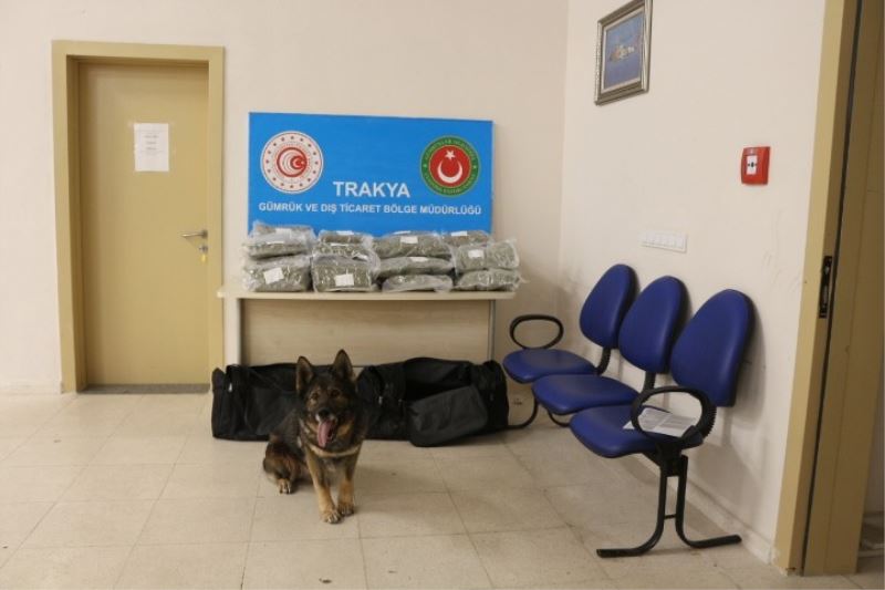 Hamzabeyli Gümrük Kapısı’ndan Türkiye’ye giriş yapacak bir tır, riskli olduğu değerlendirilerek x-ray tarama cihazına sevk edildi. Yapılan taramada, aracın dorsesinin alt bölümünde şüpheli yoğunluğa rastlanıldı. Narkotik dedektör köpeği aracılığıyla yapılan detaylı aramada, köpeğin şüpheli yoğunluk tespit edilen bölgeye tepki vermesi üzerine, araç dorsesinin altına halat yardımıyla bağlanan 2 adet siyah renkli valizin bulunduğu saptandı. Söz konusu valizlerin içerisinde esrar cinsi uyuşturucunun olduğu anlaşıldı. 39 ayrı şeffaf torba ile paketlenen, toplamda 30 kilogram ağırlığındaki uyuşturucunun piyasa değerinin yaklaşık 650 bin lira olduğu belirlendi. Söz konusu uyuşturucu ile birlikte uyuşturucunun naklinde kullanılan tır aracına da el konuldu. Olayla ilgili araç sürücü gözaltına alınırken Edirne Cumhuriyet Başsavcılığı nezdinde yürütülen soruşturmaya devam ediliyor.