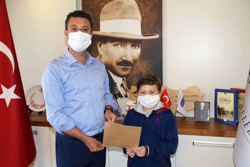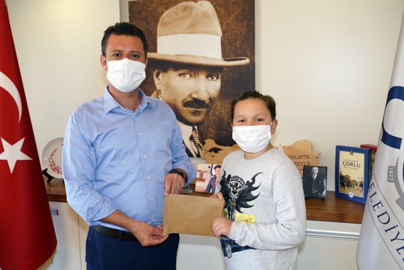 Çorlu Ticaret ve Sanayi Odası İlkokulu öğrencilerinden 4. sınıf öğrencisi Arif Yiğit Okan ve 2. sınıf öğrencisi Eren Yağız Okan biriktirdikleri harçlıkları ile Askıda Fatura kampanyasına destek oldular. Okan kardeşler belediyeye gelerek zarflara yerleştirdikleri harçlıklarını Çorlu Belediye Başkanı Ahmet Sarıkurt’a teslim etti.