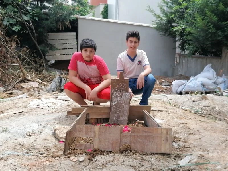 Harçlıklarıyla besledikleri köpeğe elleriyle mezar yaptılar