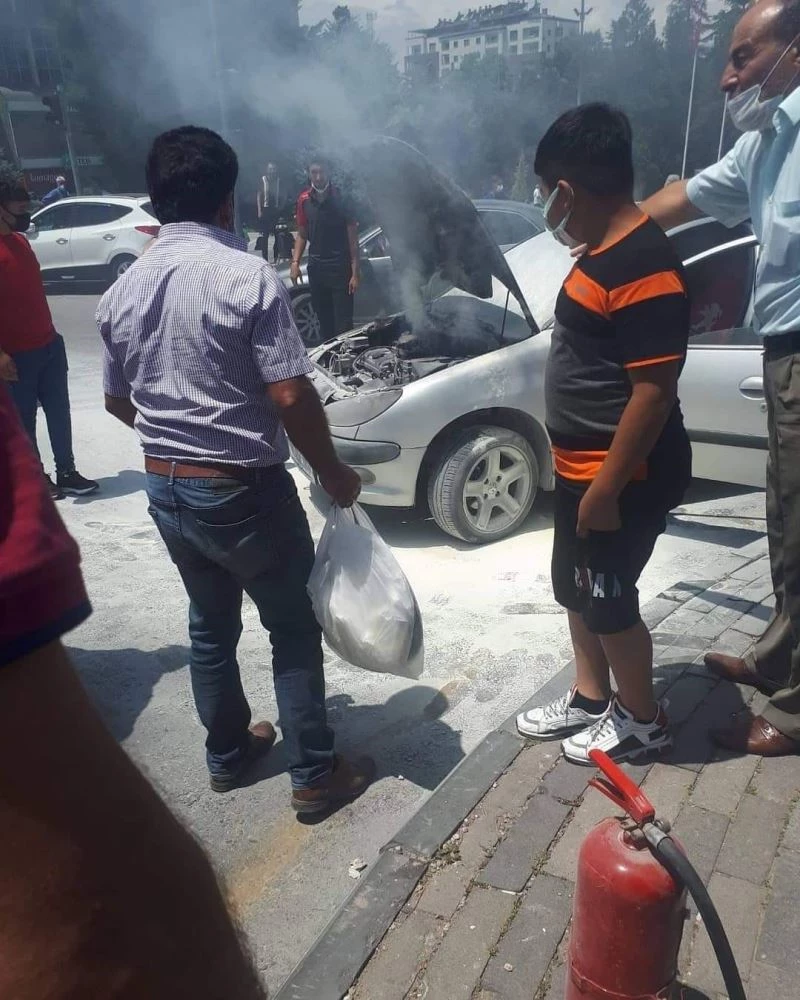 Edinilen bilgiye göre Cumhuriyet Meydanında bir otomobil hareket halindeyken alev aldı. Olayı gören çevredeki esnaflar ilk müdahaleyi yaparak yangının büyümesini engelledi. Haber verilmesi üzerine kısa sürede olay yerine gelen polis ekipleri çevrede güvenlik önlemi alırken itfaiye ise yangına müdahale etti. Otomobilde çıkan yangın, ekipler tarafından kontrol altına alındı. Otomobilde maddi hasar oluştu.