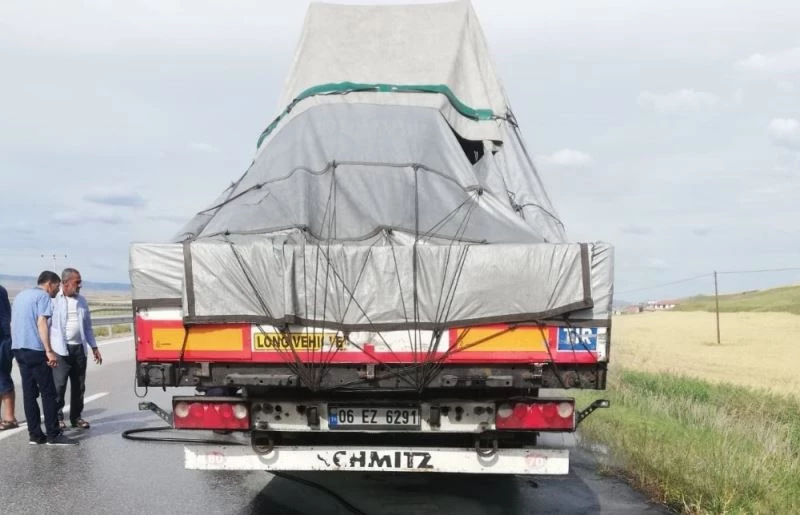 Edinilen bilgilere göre olay Sungurlu-Kırıkkale karayolunun 17. Kilometresinde meydana geldi. Ankara’dan Çorum istikametine seyir halinde olan Emrah Aslan yönetimindeki 06 EZ 6291 plakalı cfam yüklü TIR’ın arka lastikleri, balataların aşırı ısınması nedeniyle seyir halindeyken alev aldı. Aynadan alevleri gören sürücü, TIR’ı yol kenarına çekip yangın söndürme tüpleriyle müdahale etti. Diğer sürücüler durumu Sungurlu Belediyesi İtfaiye Müdürlüğü ekiplerine bildirdi. Kısa sürede olay yerine gelen itfaiye ekipleri, TIR’ı tamamen yanmak kurtardı.
