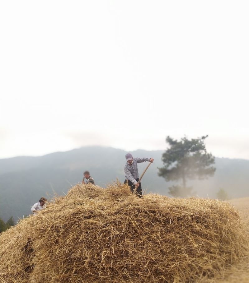 Teknolojiden uzak bilek gücü ve alın teri ile kışlık mahsullerini elde eden yöre halkı günlerce ekinlerini orakla biçti. Yığın haline getirilen ekinler, harman makinesinden işlemden geçirildi. Samandan ayrılan buğdaylar torbalara konuldu.