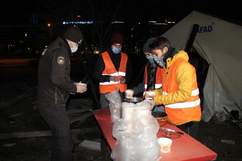 Hasarlı binalarda nöbet tutan bekçilere çorba ikramı