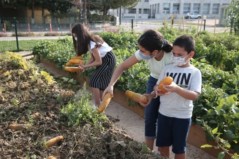 Nilüfer Belediyesi’nin hayata geçirdiği İhsaniye Mini Bostanı’nı ziyaret eden çocuklar ve aileleri, hasat ettikleri ürünlerin tohumlarını çıkarmayı öğrenirken çalışmalar hakkında da bilgi aldı.
