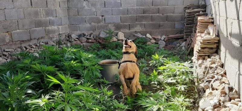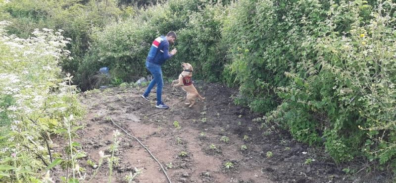 Çanakkale İl Jandarma Komutanlığı ekiplerinin uyuşturucu arama köpeği ‘Roket’ ile yaptığı operasyonda 933 kök kenevir bitkisi, 77 adet kenevir fidesi, 30,66 gram kenevir tohumu ele geçirildi.