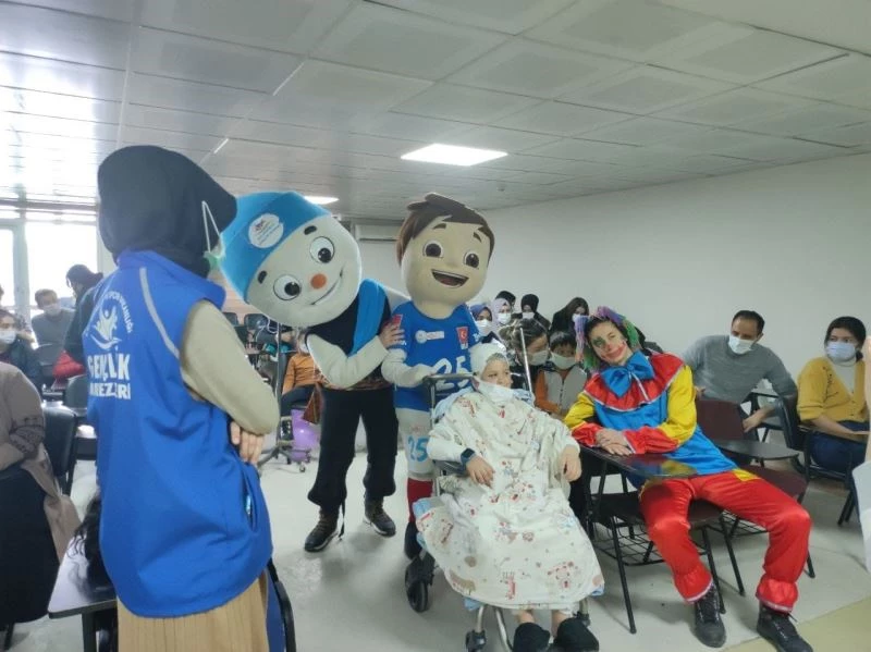Erzurum Gençlik ve Spor İl Müdürlüğü Palandöken Gençlik Merkezi Atatürk Üniversitesi Araştırma Hastanesi Çocuk Servisini şölen yerine çevirdi. Çocuk hastalara moral veren gençlik liderleri ve gönüllü gençler miniklere bere ve bileklik hediye etti.