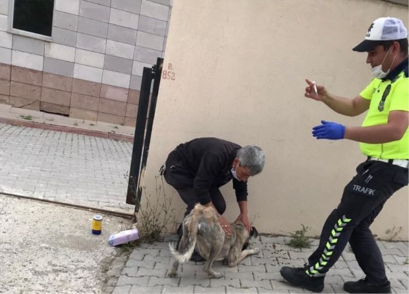 Hasta olan köpeği yakalayıp iğnesini yapan trafik polisi büyük takdir topladı