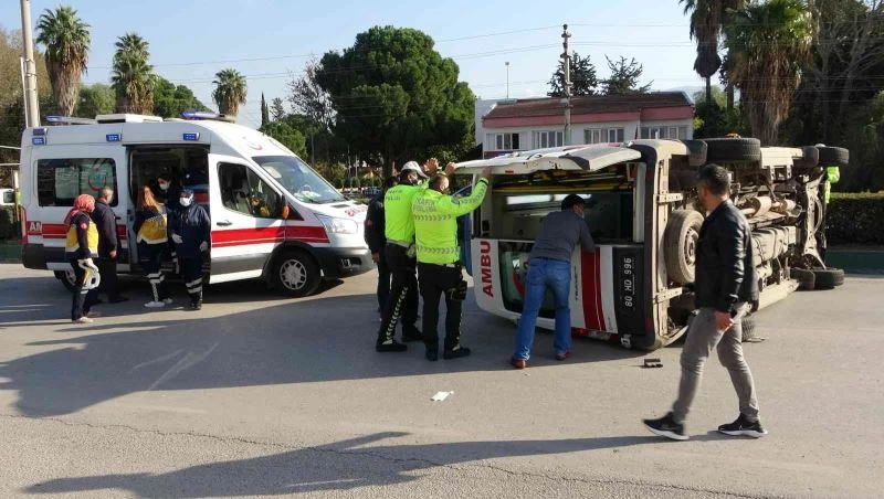Osmaniye’de hasta taşıyan ambulans ile hafif ticari aracın çarpışması sonucu meydana gelen kazada 4 kişi yaralandı. Yaralılar başka ambulanslarla hastaneye kaldırılırken yan yatan ambulans, trafik ve yunus ekiplerinin desteği ile kaldırıldı.