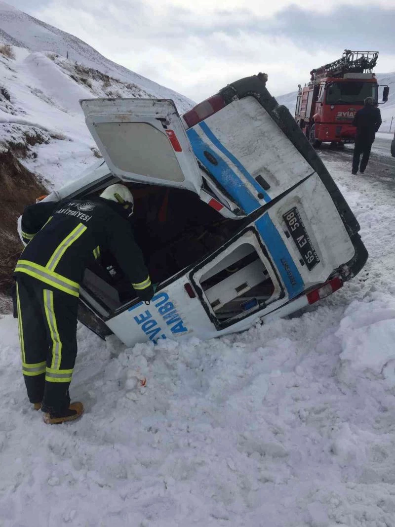 Van’ın Başkale ilçesinde hasta taşıyan ambulansın yan yatması sonucu 5 kişi yaralandı.