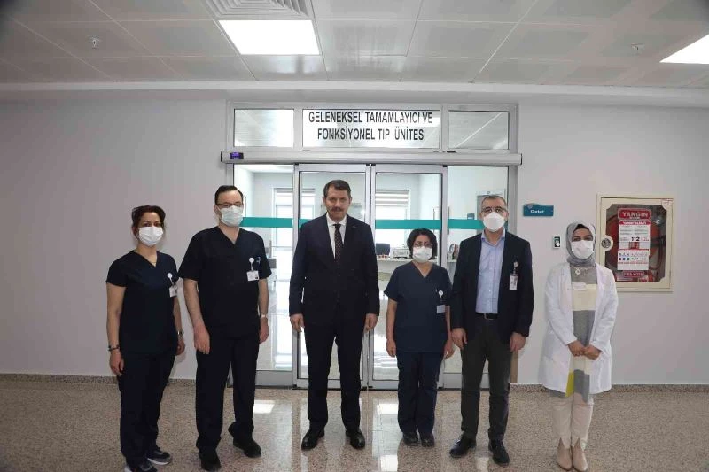 GETAT çıkışı açıklamalarda bulunan Vali Ayhan, “Çok özgü ve farklı alanda hizmetler vermeye başladı. Bunların bir tanesi de Geleneksel Tamamlayıcı ve Fonksiyonel Tıp Ünitesi bunun diğer adı da GETAT. Bununla ilgili de hocalarımız yeni birimler oluşturdu çalışanlarımız var ve gittikçe de ilgi görmeye başladı. Bizzat bende hacamatımın uygulamasını burada yaptırdım. Mevsimsel anlamda çokta faydalı oldu. Bu bir alternatif tıp değil, geleneksel tamamlayıcı bir tıp. Bilimsel ve yetkin insanlar ile de bu hizmet verilmektedir. Hastanemizin bu sebeple bu sağlık hizmetlerini bilimsel bir şekilde vermekle birlikte geleneksel tamamlayıcı tıp hizmetlerini vermesi hakikaten bu şekilde vatandaşımıza yönelik güzel hizmet olduğu aşikârdır. Hocamıza çalışanlarımıza teşekkür ediyorum ve vatandaşlarımızı da burayı ziyaret etmeyi ve buradan faydalanmalarını özellikle istiyorum. Bizzat bende müşahede ettim ilk tedavimi aldım. Teşekkür ediyorum merkezimizi sağlıklı olmak için, dinç olmak için dirençli olmak için herkesi buraya tedavi olmaya bekliyoruz bizde tedavimizi olduk hocalarımıza teşekkür ediyorum” dedi.