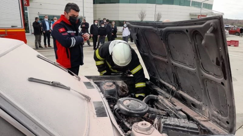 Tokat’ın Erbaa ilçesinde hastane bahçesinde bir otomobilde çıkan yangın korku dolu anların yaşanmasına neden oldu.