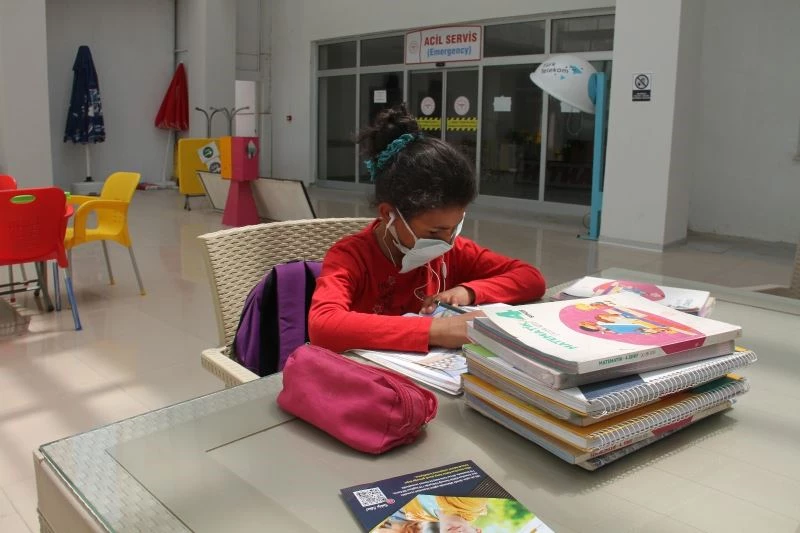 İnternet bağlantısı olmadığı için sadece kitaplarla çalışma yapan Cennet’e hastane yönetimi tarafından kablosuz internet bağlantısını kullanması da sağlandı. Okula gider gibi her gün sırt çantasını alarak hastaneye gelen, daha güvenli bir ortamda ders çalışmaya devam eden minik Cennet, çalışması bitince odasını toplar gibi masasını düzenleyip kantinden ayrılıyor.