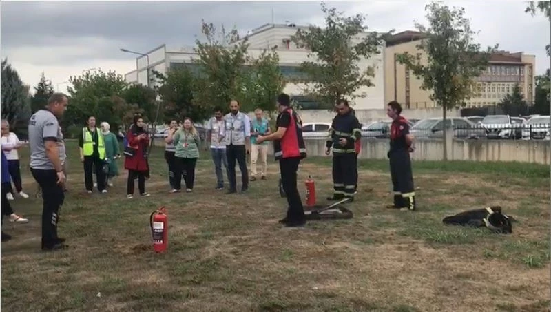 DÜZCE – Düzce Atatürk Devlet Hastanesi’nde afet farkındalık eğitimleri ile oluşturulan farkındalığın kalıcılığını sağlamak amacıyla yangın ve tahliye tatbikatı gerçekleştirildi.