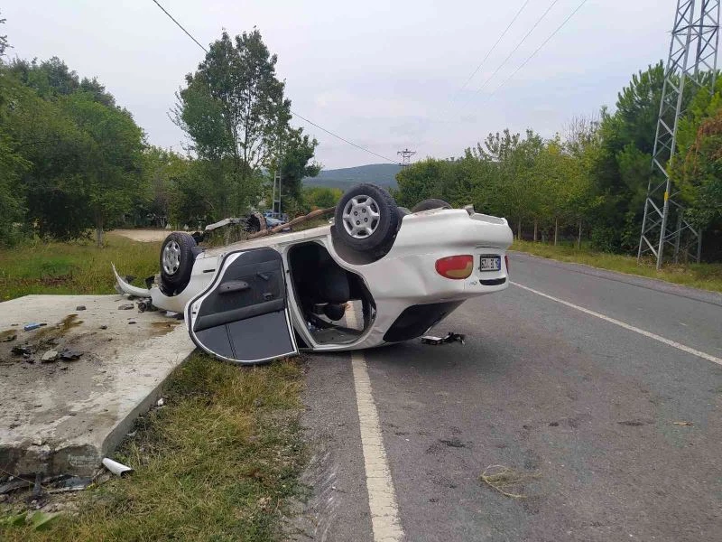 Çatalca’da hastaneden aldığı komşusuyla eve doğru yola çıkan bir kişi, kullandığı otomobilin direksiyon hakimiyetini kaybedince beton durağa çarpıp takla attı. Kazada 1’i ağır olmak üzere iki kişi yaralandı.