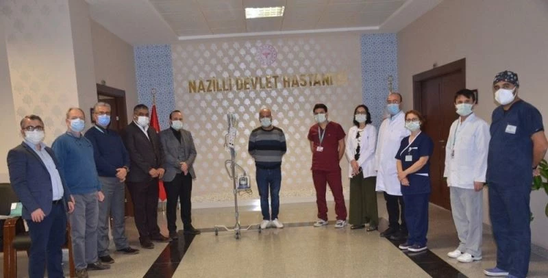 Nazilli’de özel bir tarım ürünleri işletmesinin sahibi Abdullah Şimşek tarafından Nazilli Devlet Hastanesine Kovid-19 tedavisinde önemli yeri olan yüksek akımlı oksijen cihazı bağışında bulunuldu.