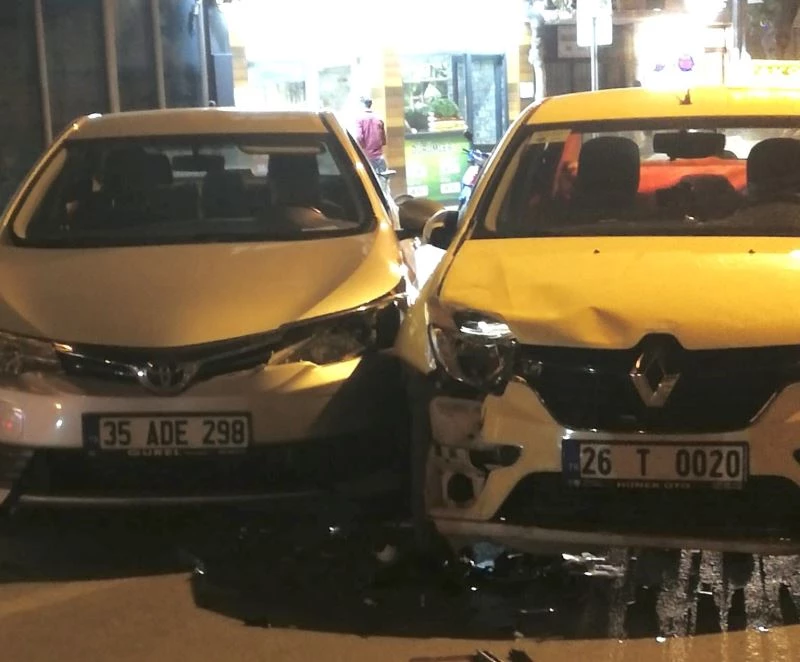 Eskişehir’de hatalı dönüş yaptığı iddia edilen ticari taksi başka bir otomobile çarptı.