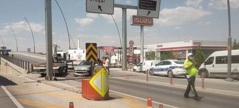 Olay, Pamukkale ilçesi Fevzi Çakmak Bulvarında meydana geldi. plaka ve sürücü bilgisi henüz bilinmeyen Toyota markalı otomobil sürücüsü trafik kurallarına uymayınca aydınlatma direğine çarptı. Güvenlik kameralarına anbean yansıyan kazada, alt geçide girmek üzere olan otomobil sürücüsü şerit değiştirmenin yasak olduğu alanda bariyerleri teğet geçerek şerit yan yola bağlanmak istedi. bir anda direksiyon hakimiyetini kaybeden sürücü aydınlatma direğine çarptı. Çevredeki vatandaşların ihbarı üzerine bölgeye polis ve sağlık ekipleri sevk edildi. Şans eseri ölen ya da yaralananın olmadığı kazada maddi hasar meydana geldi. hasar gören otomobilin çekici ile kaldırılması ile trafik normale döndü.