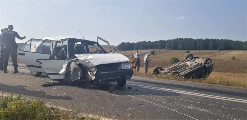 Karabük’ün Eflani ilçesinde sürücünün hatalı sollaması sonucu otomobil başka bir otomobile çarparak takla attı. 3 Kişinin yaralandığı kaza anı bir akaryakıt istasyonunun güvenlik kamerasına saniye saniye kaydedildi.