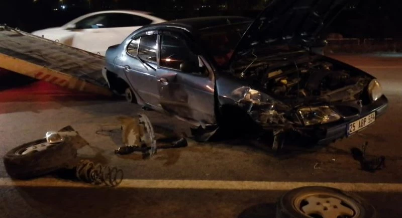 Erzurum-Aziziye yolu üzerinde iki aracın kaza yapması sonucu bir araç kullanılamaz hale gelirken, diğeri demir telleri yıkarak boş araziye uçtu. Kazada yaralanan iki şahıs sağlık ekipleri tarafından hastaneye kaldırıldı.
