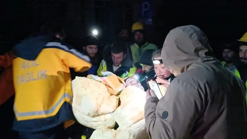 Kahramanmaraş’ta meydana gelen depremden en çok etkilenen yerlerden Hatay’da arama kurtarma çalışmaları gece de aralıksız sürdü. Merkez Antakya ilçesi çöken bir binada çalışma yapan ekip enkazdan ses duydu. Çalışmaları yoğunlaştıran ekipler, enkazda biri kadın iki kişiye ulaştı. Enkazdan kadın sağ çıkarılırken, diğer kişinin hayatını kaybettiği belirlenerek, cansız bedeni bulunduğu bölgeden alındı.