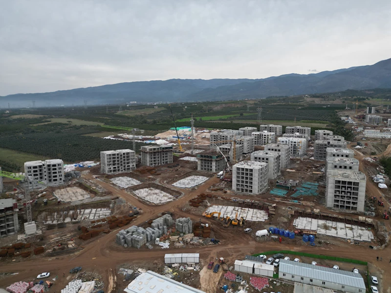 Kahramanmaraş merkezli depremlerden etkilenen Hatay genelinde Toplu Konut İdaresi Başkanlığınca (TOKİ) depremzedeler için yapımına başlanan konutlarda çalışmalar devam ediyor.