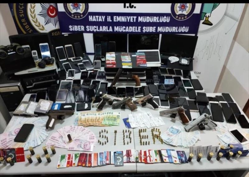 Zanlıların adreslerinde 5 av tüfeği, 7 tabanca, 150 fişek, 2 bin banka ve kredi kartı, 20 dizüstü bilgisayar, 130 cep telefonu, 350 SIM kart, 30 tablet, 10 bilgisayar ve 25 harici bellek ele geçirildi.