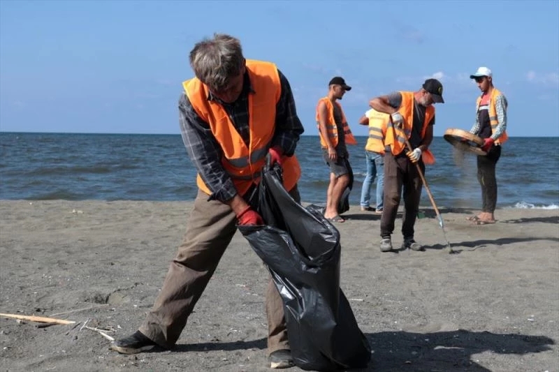 Çevre ve Şehircilik İl Müdürlüğü ekipleri, sahildeki temizlik çalışmalarını sürdürüyor.