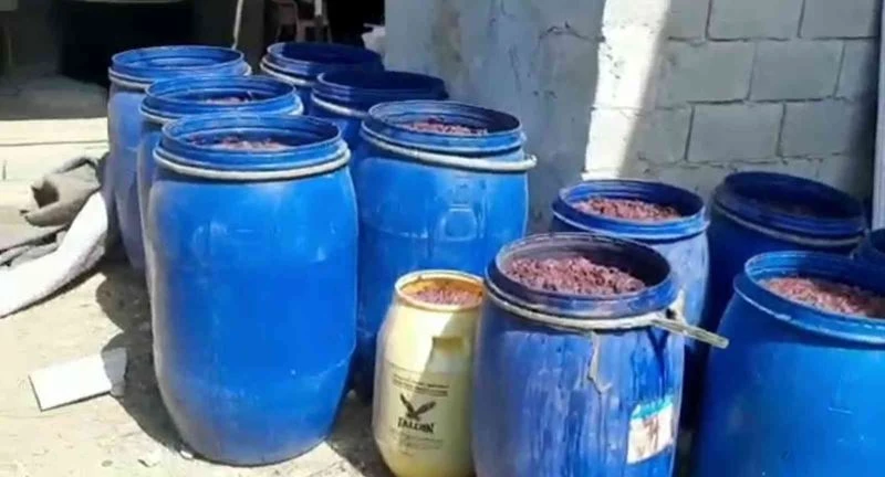 Hatay’ın Hassa ilçesinde iki adrese yapılan baskında 4 bin 250 litre sahte içki ele geçirildi.