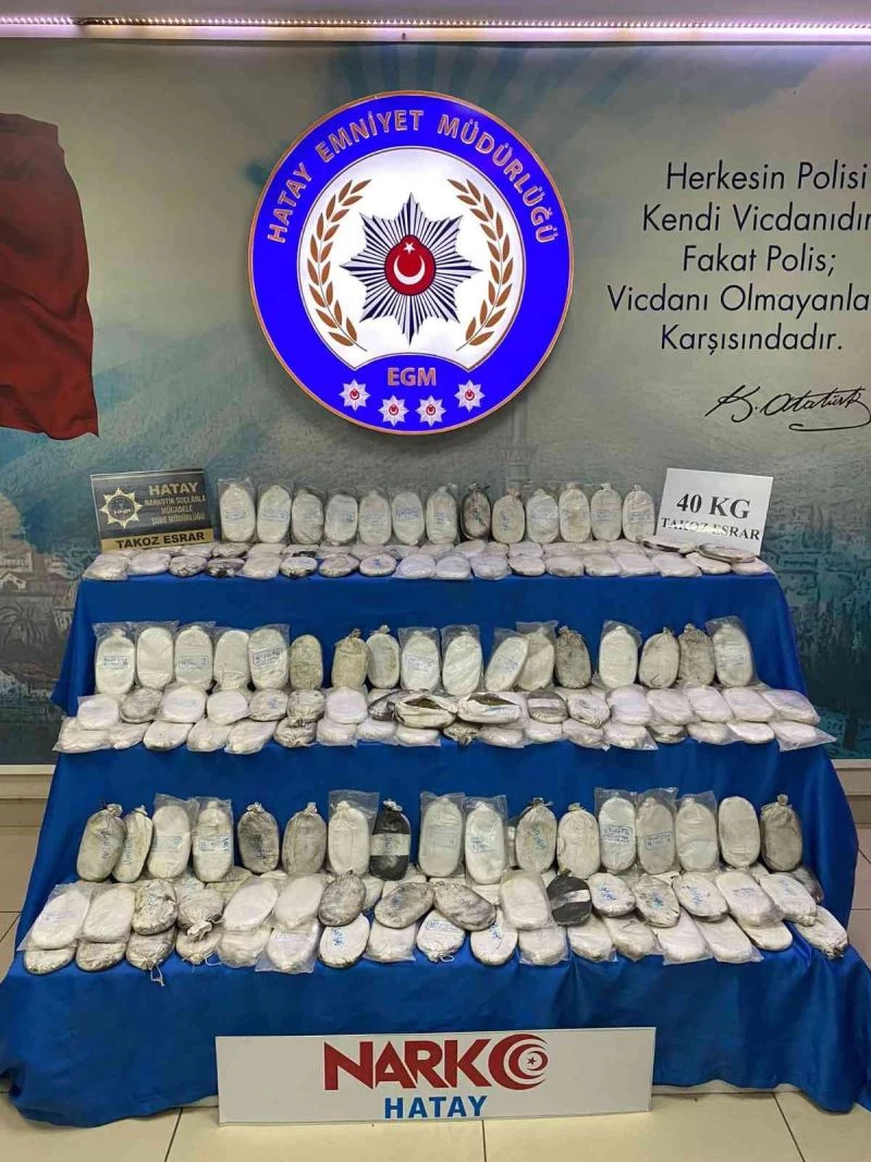 Hatay’ın merkez ilçesi Antakya’da bir araç içerisinde yapılan aramada 40 kilogram esrar ele geçirildi.