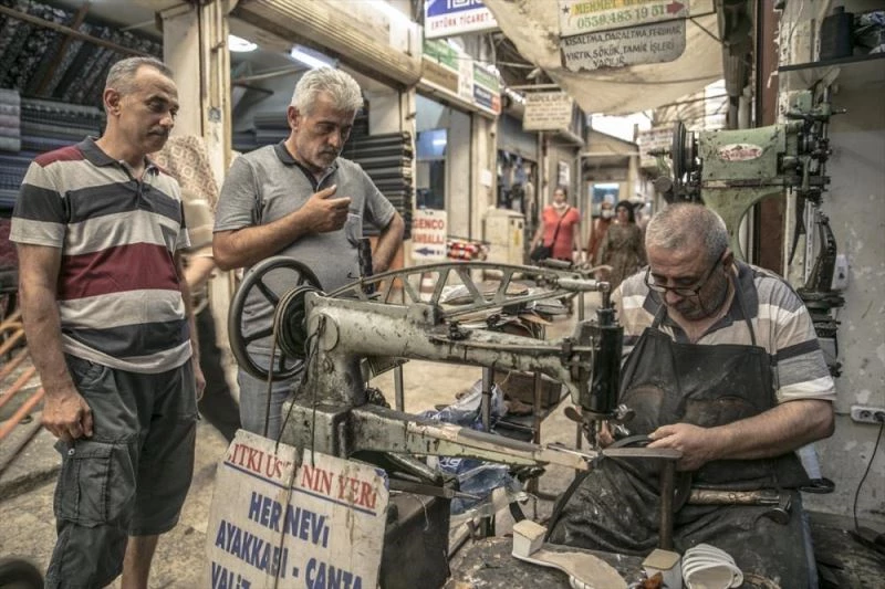 Tarihi Uzun Çarşı'daki 7 metrekarelik iş yerinde ayakkabı ve çanta tamir ederek geçimini sürdüren Yenilmez, 60 yıldır her sabah dükkanını aynı heyecanla açıyor.