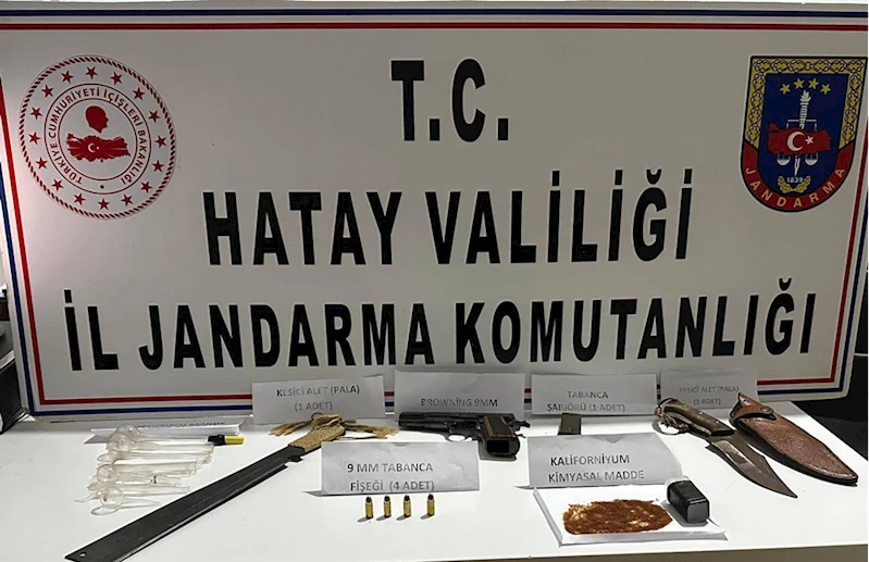 Burada yapılan aramada, 9 mm çapında ruhsatsız tabanca, 2 pala, 8 uyuşturucu madde kullanma aparatı ve 9 gram kaliforniyum kimyasal maddesi ele geçirildi.