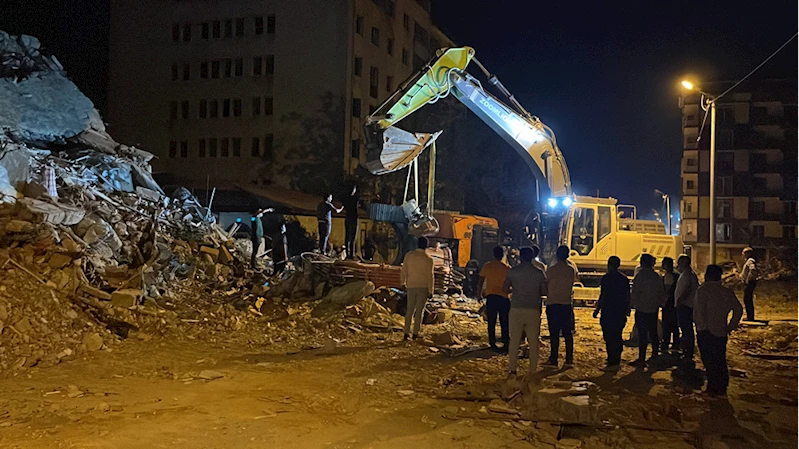 Gündüz Caddesi'nde yıkım kararı verilen ağır hasarlı 6 katlı bir bina, kontrollü yıkım çalışması sırasında iş makinesinin üzerine çöktü.