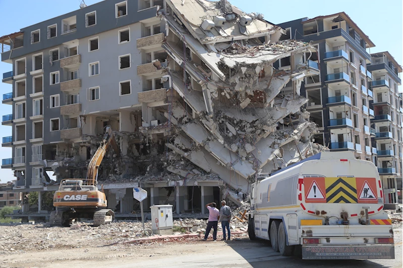 Bu kapsamda ekiplerin çevresinde önlem aldığı merkez Antakya ilçesi Aksaray Mahallesi'ndeki ağır hasarlı 7 bina, iş makineleriyle kontrollü yıkıldı.