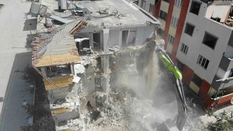 Hatay’da ağır hasarlı binaların yıkımı sürüyor