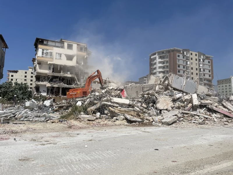 Hatay'da ağır hasarlı binaların yıkımı sürüyor