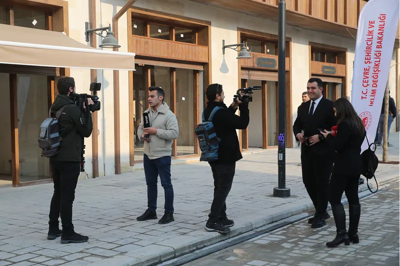 Çevre, Şehircilik ve İklim Değişikliği Bakanlığı koordinasyonundaki etkinliğe katılan basın mensupları, restorasyon çalışmalarının sürdüğü tarihi Uzun Çarşı'yı gezdi.