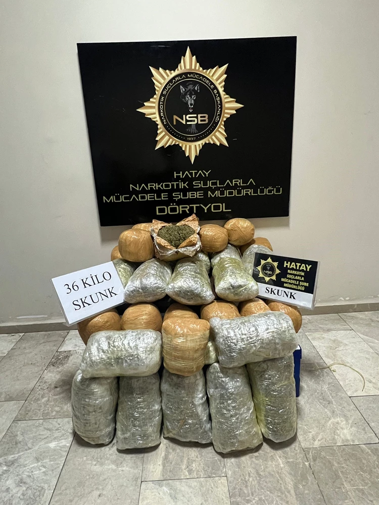 Yapılan aramada 36 kilogram skunk ele geçirildi. Araç şoförü A.U.K. gözaltına alındı.