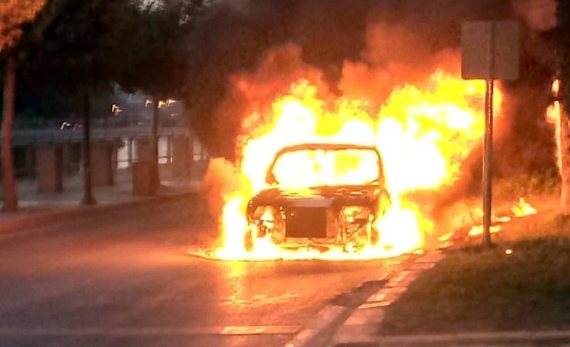 Hatay’ın Antakya ilçesinde bir araç sebebi bilinmeyen bir nedenle yandı.